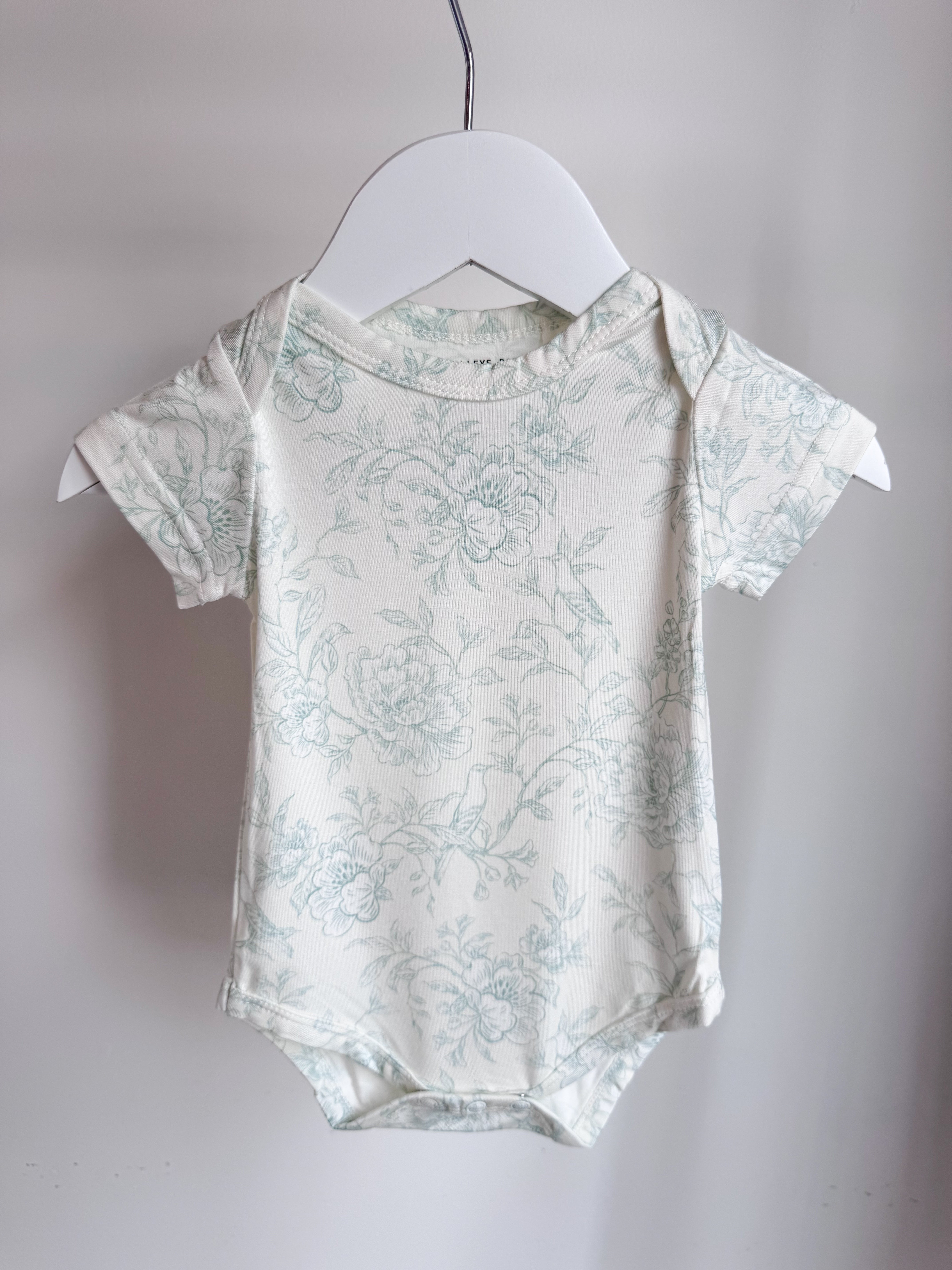 Classic short sleeve onesie with snap bottom for easy diaper changes. The envelope neckline makes dressing little ones quick and easy. Made from buttery soft Bamboo Rayon, this onesie is the perfect daywear basic for babies.