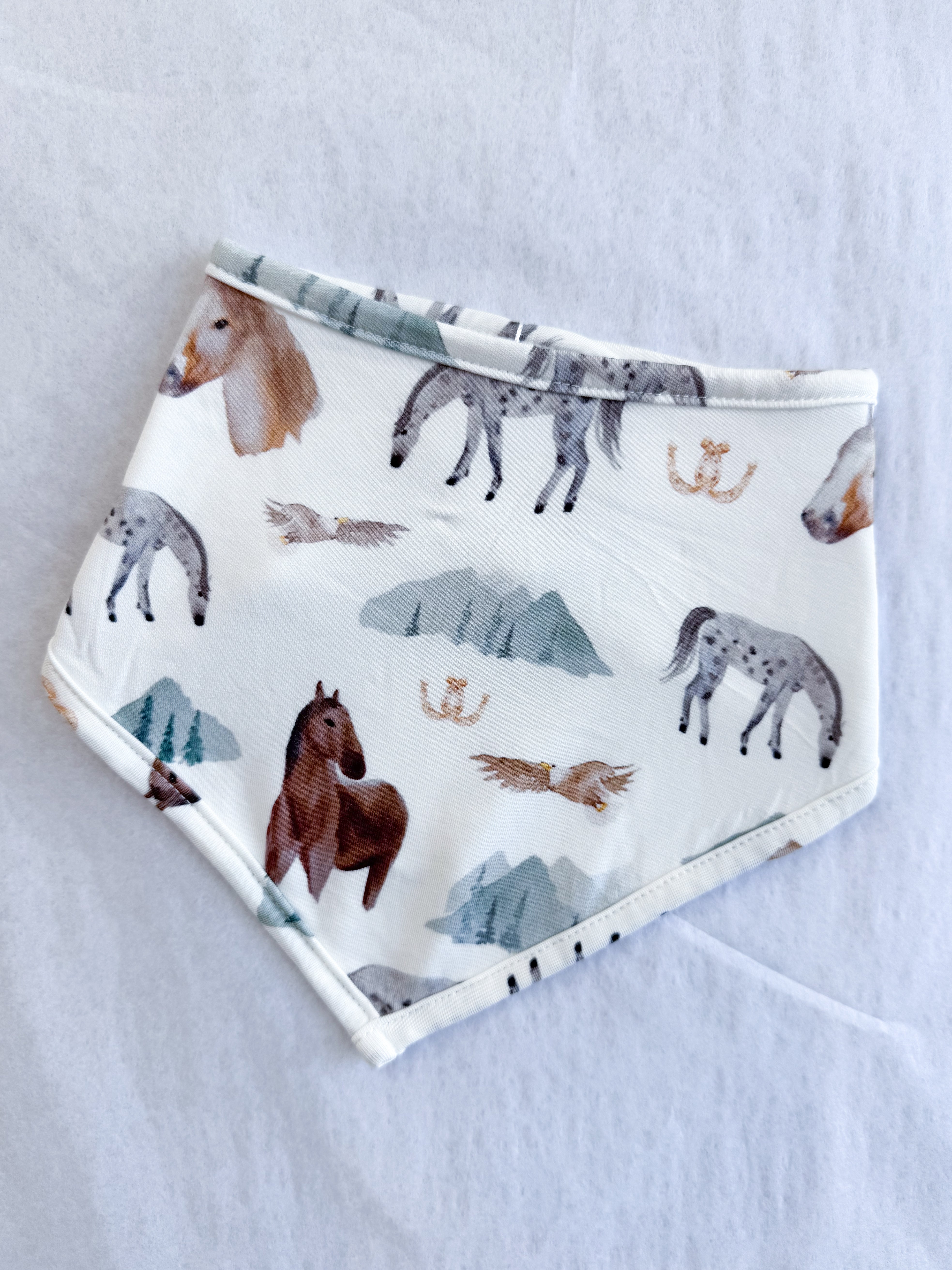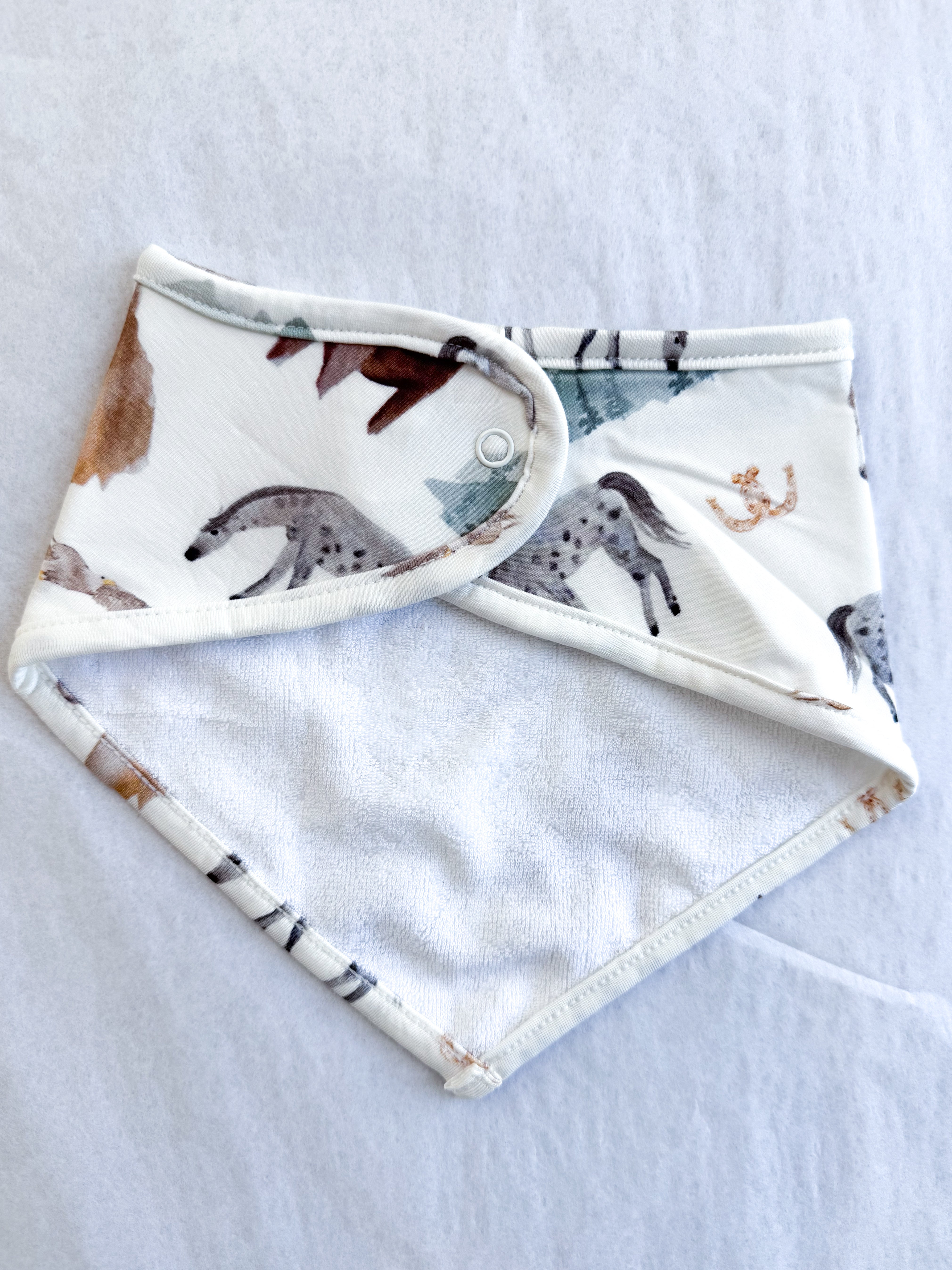 Adorably packaged and ready to gift, this horse-themed bamboo bib is as practical as it is precious. Featuring a soft, watercolor print of wild horses and mountains, it’s a thoughtful and stylish choice for baby showers, birthdays, or welcome-home bundles.