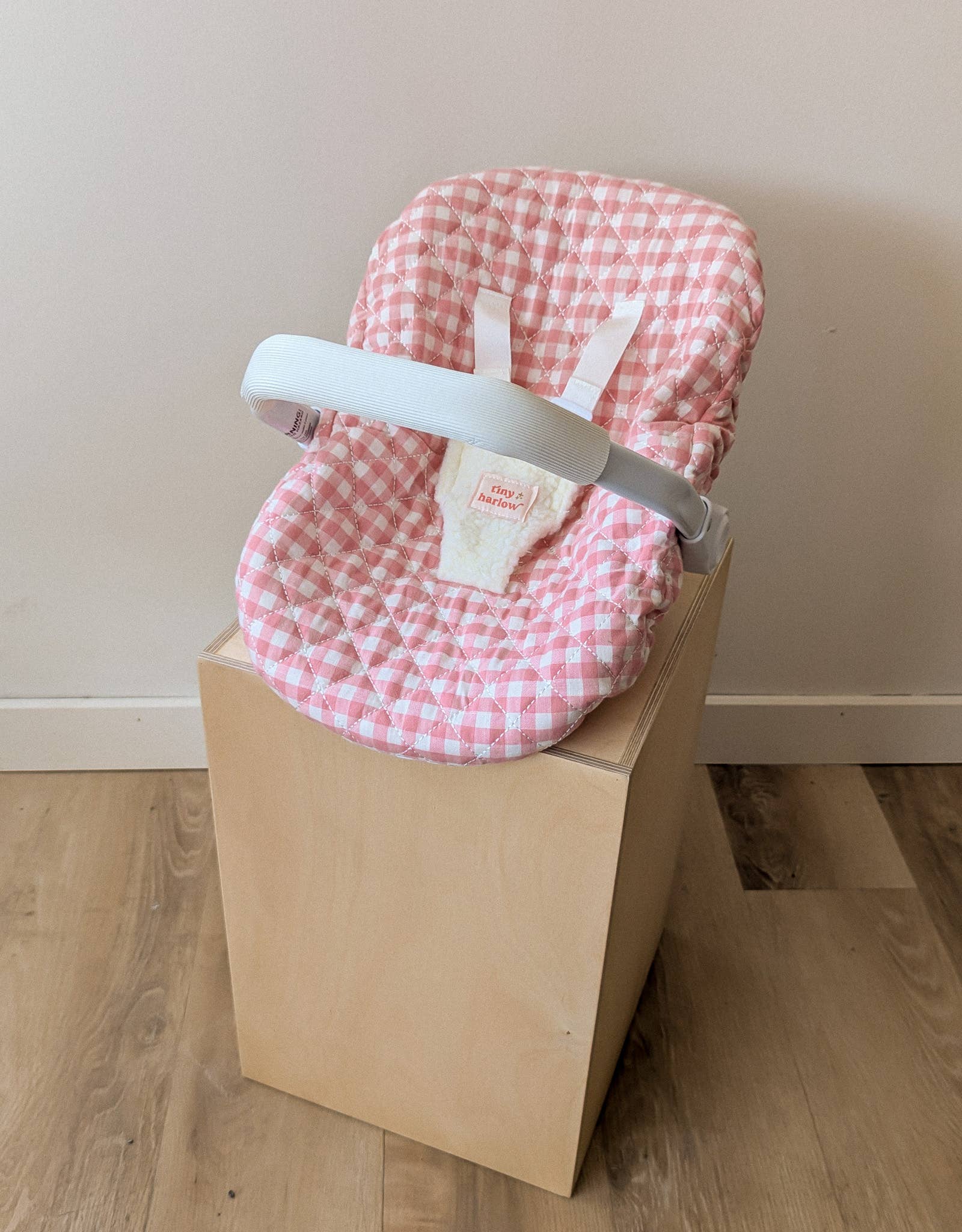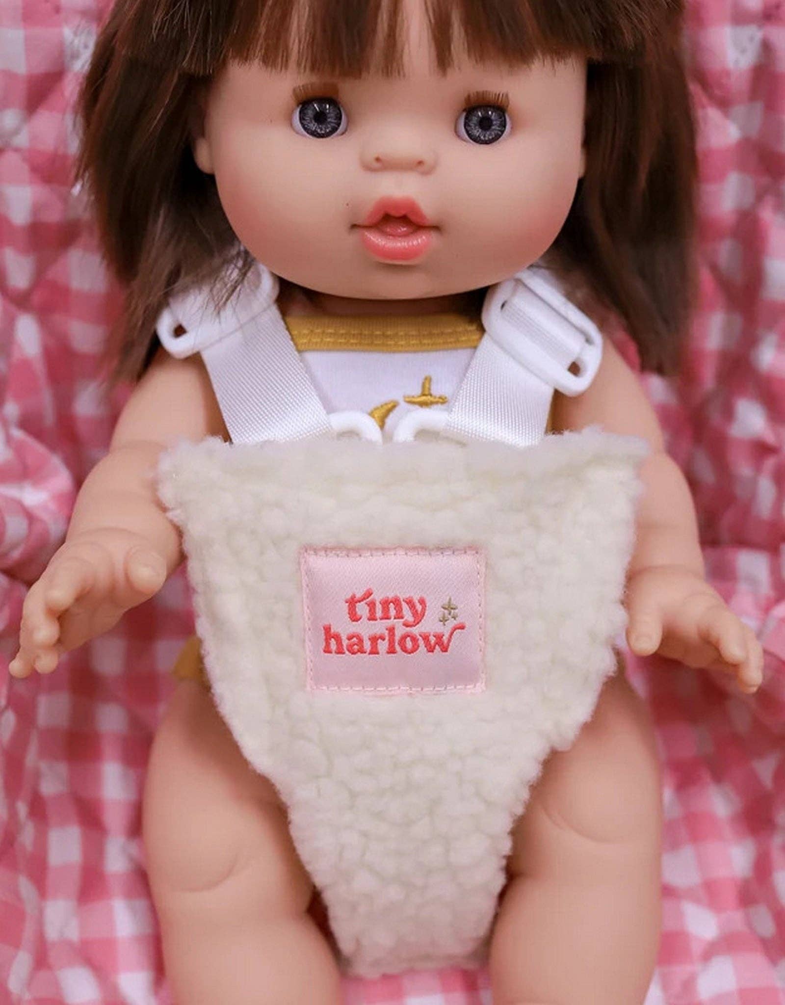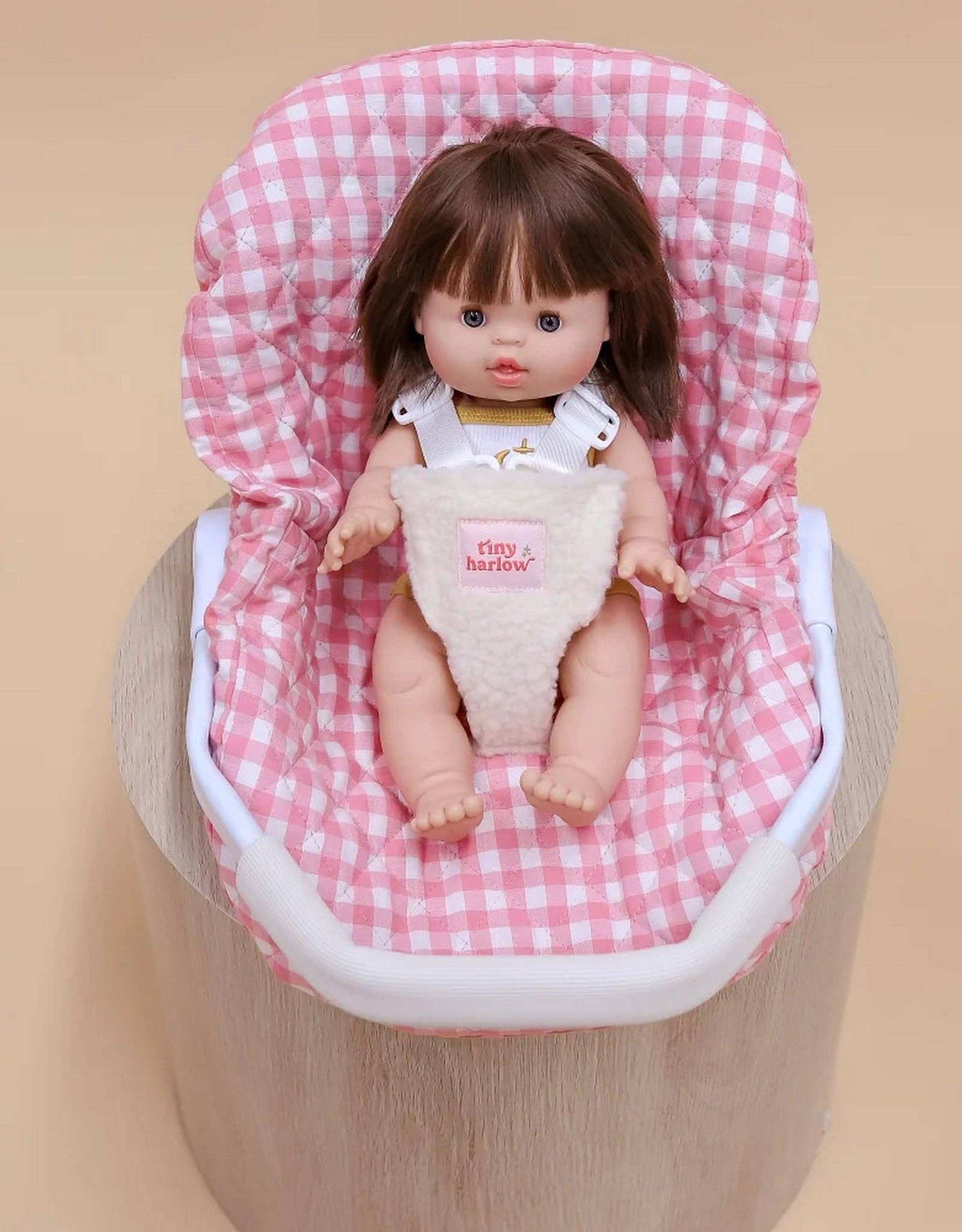 Introducing the Tiny Harlow capsule, perfect for carrying your precious doll! Practical, durable, and pretty, it will delight children who want to take their doll everywhere with them. The doll even attaches like a real baby, using a strap and a click closure! The handle can be placed on top for easy transport. The essential accessory for taking care of your doll! Product details: - Removable cover - Movable handle to stabilize the seat or for carrying - Click closure to attach the doll - Lightweight - Dimensions: 18 x 30 x 43 cm - Recommended for children aged 3 and over - Meets European and American standards Care instructions: - Removable and washable cover. Designed in Australia, made in China